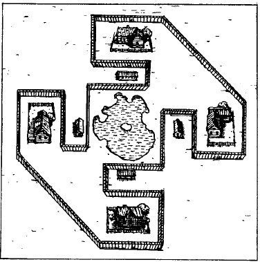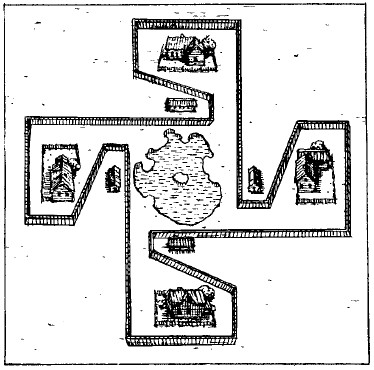 Все 10 домов расположены здесь, как требовалось в задаче: по 4 на каждой из пяти прямых стен.