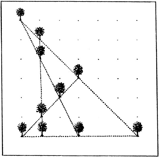 8. Деревья, оставшиеся несрубленными, расположены так, как показано на рис. 16.