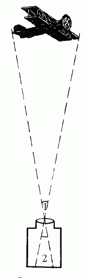 105. Из рис. 136 видно, что (вследствие равенства углов 1 и 2) линейные размеры предмета так относятся к соответствующим размерам изображения, как расстояние предмета от объекта относится к глубине камеры. В нашем случае, обозначив высоту аэроплана над землей в метрах через х, имеем пропорцию: