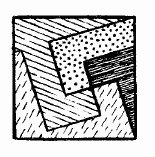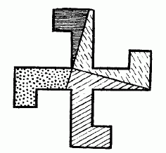 115. На рис. 142 указаны следы сабельных ударов, а на рис. 143 видно, как надо расположить образовавшиеся 4 куска, чтобы составить второй, более характерный символ фашистской диктатуры: квадрат концентрационного лагеря.