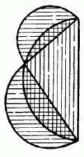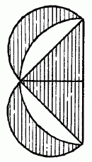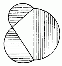 Следствие, которое я имею в виду, гласит, что сумма площадей полукругов, построенных на катетах, равна полукругу, построенному на гипотенузе (рис. 144). Перекинув большой полукруг на другую сторону (рис. 145). видим, что обе заштрихованные луночки вместе равновелики треугольнику[38].