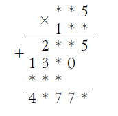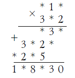 В этом примере умножения больше половины цифр заменено звездочками: