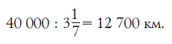 Вам известно, что метр составляет почти в точности 40-миллионную долю окружности земного шара. Другими словами, окружность Земли равна 40 000 000 м, т. е. 40 000 км. Поперечник всякого круга примерно в 3 1/ 7 раза меньше его окружности. Зная это, найдем поперечник нашей планеты: