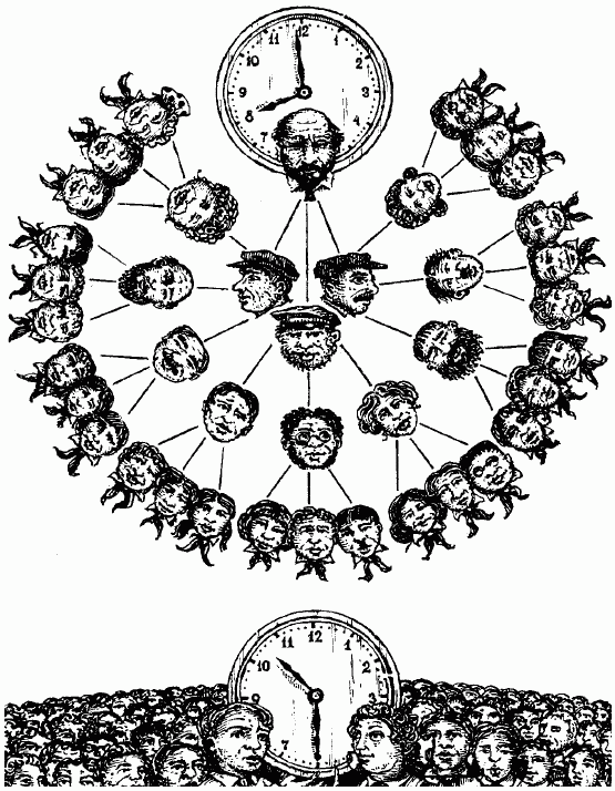 Рис. 61. В половине одиннадцатого все жители города осведомлены о новости, которая в 8 ч утра того же дня была известна лишь одному человеку