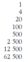 1 + 3 + (3 х 3) + (3 х 3 х 3) + (3 х 3 х 3 х 3) и т. д.
