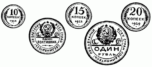 1 коп. + 2 коп. + 4 коп. + 8 коп. + 16 коп. + 32 коп. + + 64 коп. = 1 руб. 27 коп.